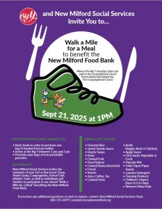 Meet at Big Y between 1 -2 pm.  Purchase a bag of groceries (suggested list below).  Walk back to the First Congregational Church with your bag, and deposit in the food bins outside the Parish House. Cookies, water and lemonade will be provided to all walkers outside of the Parish House.